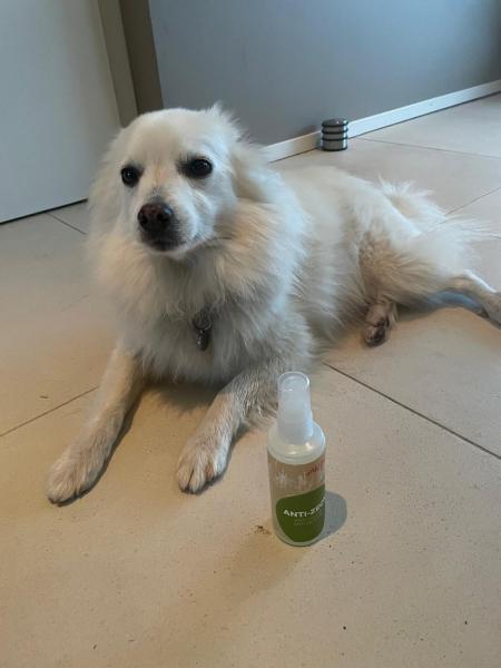 Elle a testé aussi l'anti tiques naturel en spray, pour lui éviter les produits chimiques et selon le témoignage de sa propriétaire, le produit est efficace!