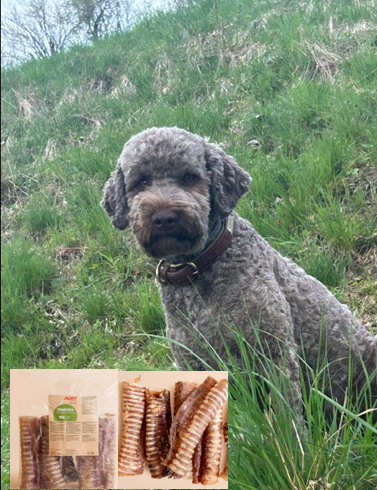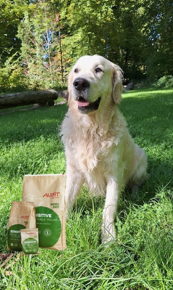 Jeune Golden Aussie qui a grandi avec le Nature Junior et passe au Semi dry poulet.